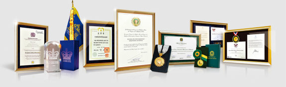 하나님의 교회가 국제사회에서 받은 주요 상·훈장·표창들. 왼쪽부터 영국 여왕 자원봉사상, 대한민국 대통령 단체표창, 페루 국회 훈장, 브라질 입법공로훈장, 미국 대통령 자원봉사상 금상. 하나님의 교회 제공