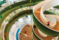 서울 동작구청 신청사에 설치된 대형 미끄럼틀 ‘디라이드’(가칭)를 타면 지상 2층 높이에서 지하 1층까지 순식간에 이동할 수 있다. 지호영 기자