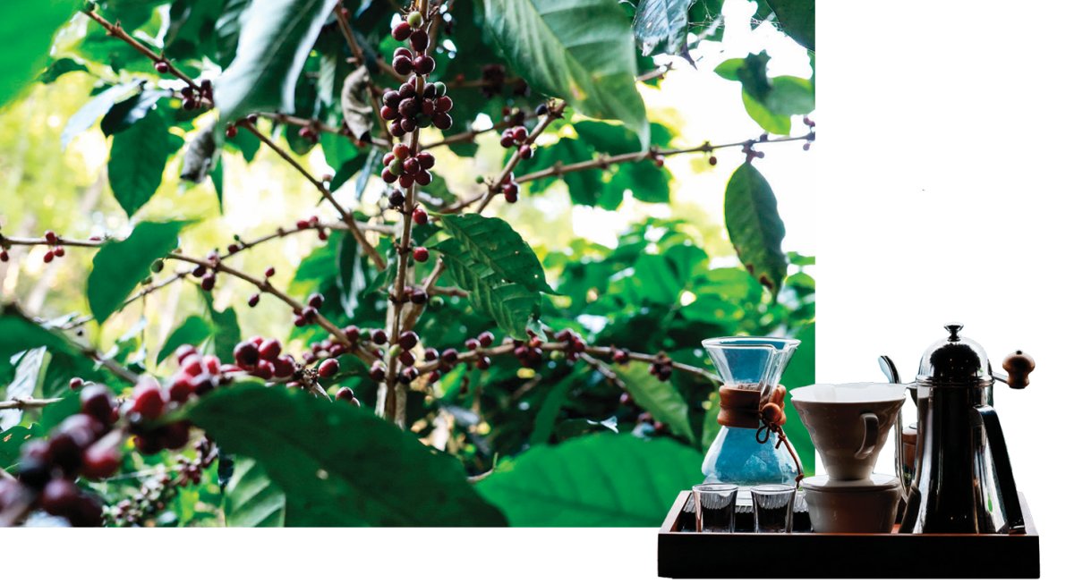 치앙라이 커피 나무(왼쪽)와 드립커피 도구들. GETTYIMAGES
