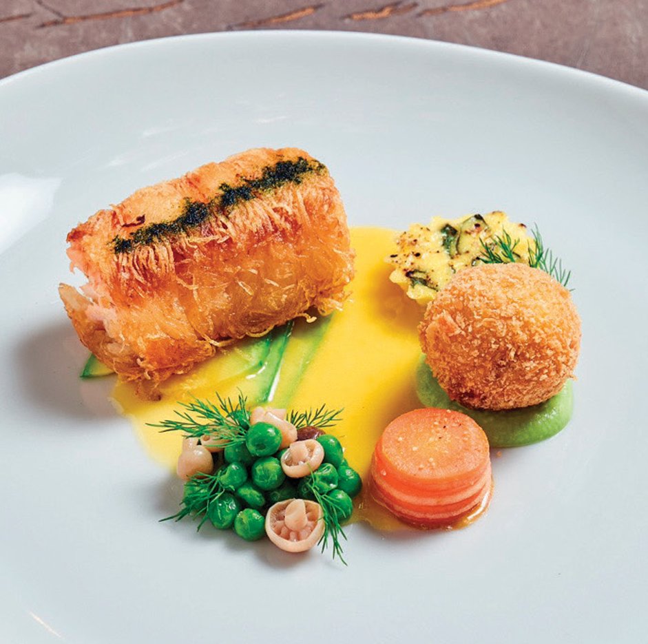 평소 감자를 깍둑썰기 해 카레에 넣거나 통째로 삶았다면, 이번엔 롤러로 얇게 썰어보자. 면처럼 얇은 감자는 종잇장처럼 흔들리며 팬 위에서 노릇하게 말린다. 감자 면을 얇게 깔고 그 위에 연어와 바질 페스토를 올려 돌돌 말면 연말 분위기에 어울리는 한 접시가 완성된다. 감자가 연어를 부드럽게 감싸면 속은 촉촉하게 익고, 바질 페스토의 향은 과하지 않게 조화를 이룬다. 접시에 담을 때 버터 소스를 얇게 두르면 풍미가 깊어진다. 완두콩이나 허브 감자를 곁들일 경우 색감이 한층 살아난다.