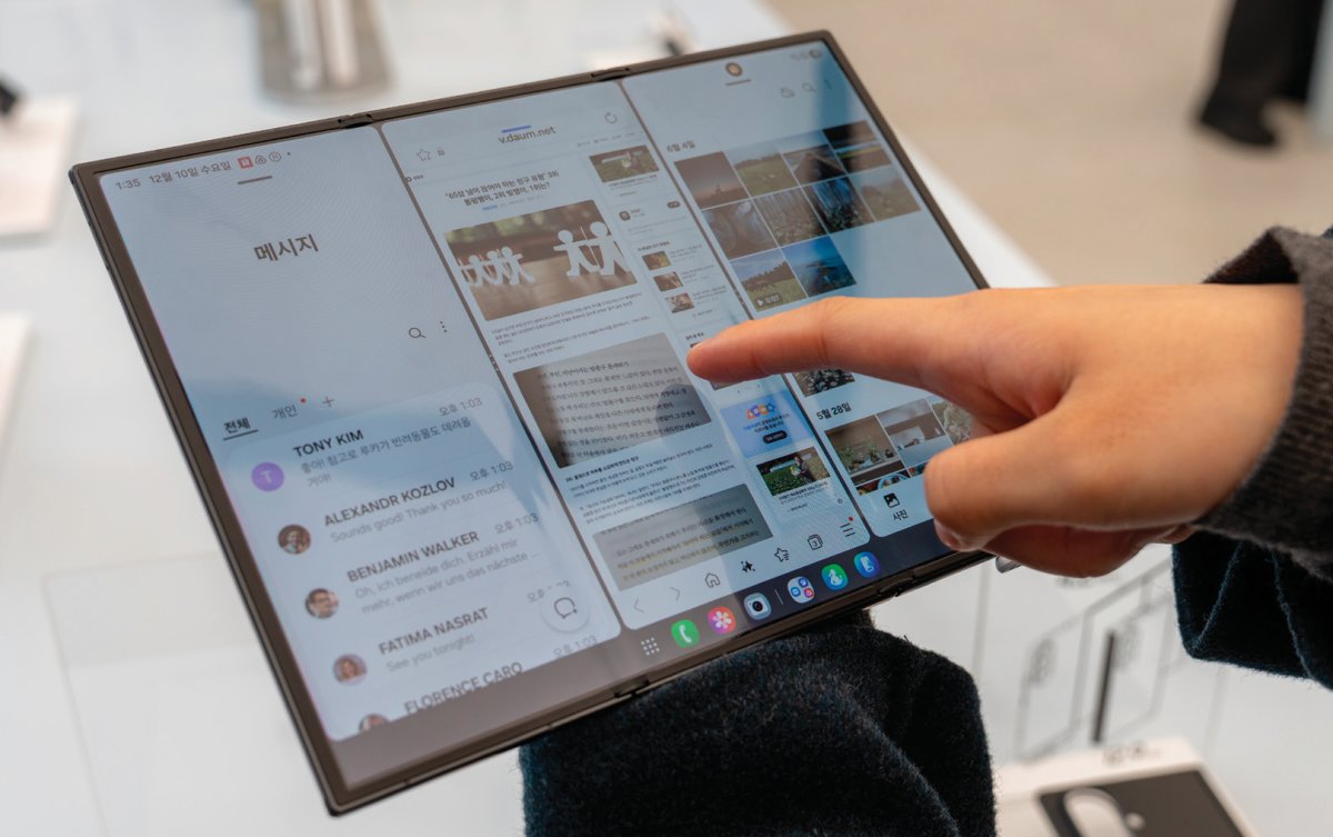12월 10일 서울 서초구 ‘삼성 강남’ 매장 2층은 공식 출시를 이틀 앞둔 ‘갤럭시 Z 트라이폴드’(트라이폴드)를 직접 보려는 방문객으로 붐볐다. 이날 매장에서 만난 ‘갤럭시 Z 폴드2’ 사용자 이청훈 씨(60)는 “앱을 3개, 4개 띄워봤는데 괜찮다”며 “출시 첫날 구매할 계획”이라고 말했다.