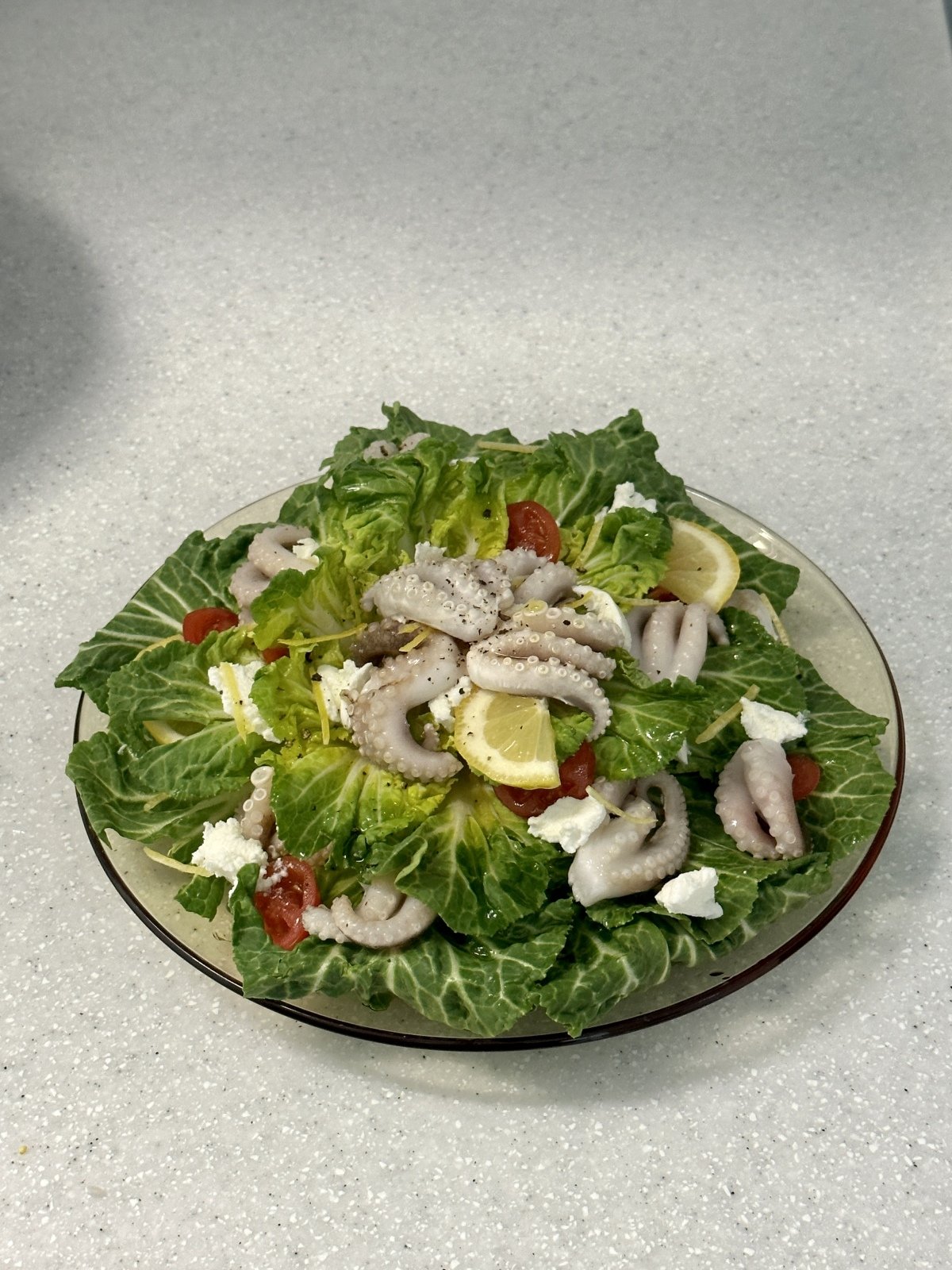 5 주꾸미와 채소를 가볍게 섞은 뒤 간장, 참기름, 레몬즙, 후추로 마무리한다.
