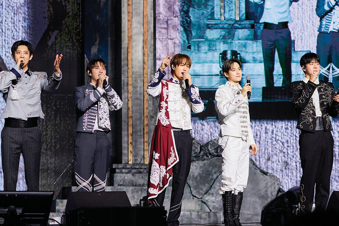 앨범 ‘리버스’ 발매를 기념해 개최한 쇼케이스에서 신곡을 선보이고 있는  ‘엑소(EXO)’ 멤버들. SM엔터테인먼트 제공