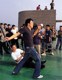 7월6일 오후 4시 서울 외곽의 한 공구상가 옥상. 청춘스타 김래원이 주연을 맡은 영화 ‘미스터 소크라테스’의 촬영현장이 처음 언론에 공개됐다. ‘미스터 소크라테스’는 ‘천하의 악질’인 동혁(김래원)이 범죄조직에 의해 납치돼 강력반…