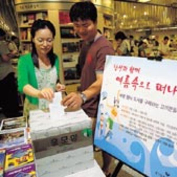 ‘구입 고객에게 300만원 상당의 여름 휴가비를 지원합니다.’ ‘1등 6명에게 호텔 2박3일 이용권을 드립니다.’ ‘5명에게 25만원 상당의 성장탕을 드립니다.’ 백화점 판매 이벤트가 아니다. 책을 사는 고객에게 주겠다는 서점과 출…