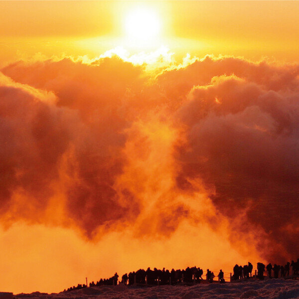 1월 1일 ▲ 2018년 무술년이 밝았다. 제주 한라산 백록담에서 해맞이객들이 운해 위로 떠오르는 새해 첫해를 지켜보고 있다.
