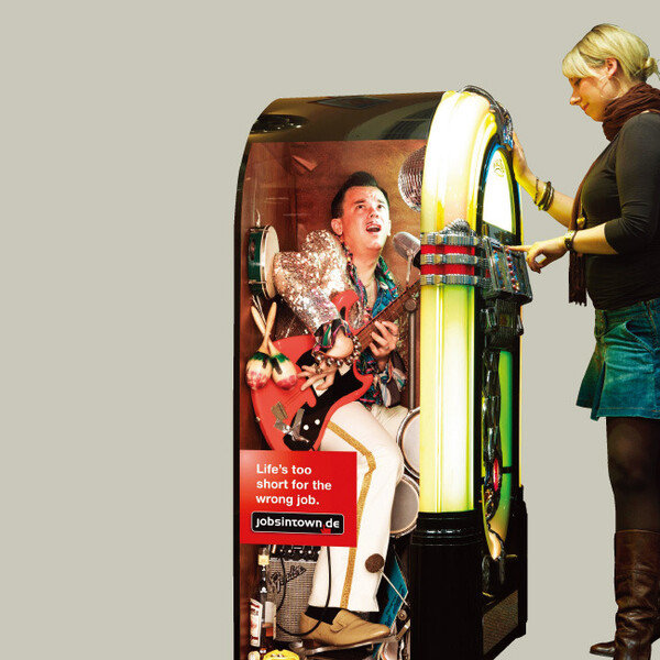 독일 직업정보 사이트 잡스인타운의 옥외광고 시리즈 중 ‘주크박스’ 편. [출처· www.jobsintown.de]도서관만큼 사각형이 많은 곳도 없다. 가끔 찾는 서울 여의도 국회도서관은 건물 모양부터 사각형이다. 사각형 기둥 사이의…