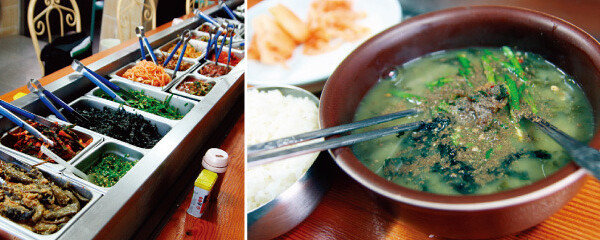 양념을 포함해 15가지 정도의 반찬이 푸짐하게 차려진 ‘원조시락국’의 이색 풍경(위). 장어 머리 우린 국물에 시래기와 된장을 넣어 끓인 시락국.꽃이 필까 시샘하는 추위가 기승인 것을 보니 봄이 오긴 온 모양이다. 봄 하면 섬진강을…