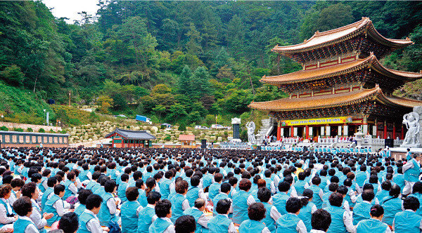 ‘관세음보살, 관세음보살….’ 대한불교천태종(종정 김도용 대종사)의 핵심 사찰인 충북 단양 구인사에서는 매년 여름과 겨울 두 차례 독특한 광경이 펼쳐진다. 천태종의 전통인 ‘한 달 안거’를 위해 전국에서 몰려든 ‘재가신도’ 1000…