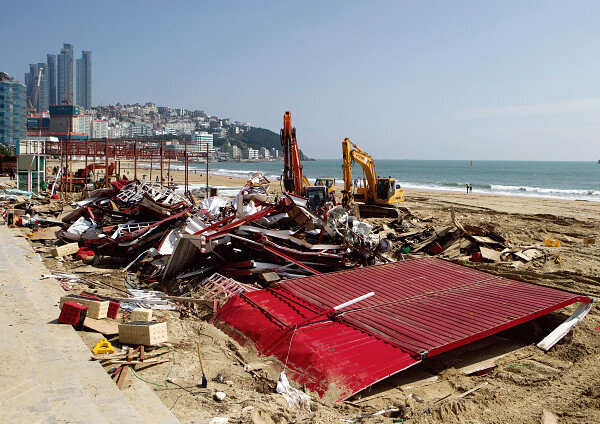 태풍 차바가 북상한 10월 5일 오후 부산 해운대에 마련된 부산국제영화제 야외무대가 아수라장이 됐다. 예정된 야외행사는 모두 영화의전당 두레라움 광장으로 옮겨 열린다. Canon EOS-1DX, ISO100, F5.6, T-1/10…