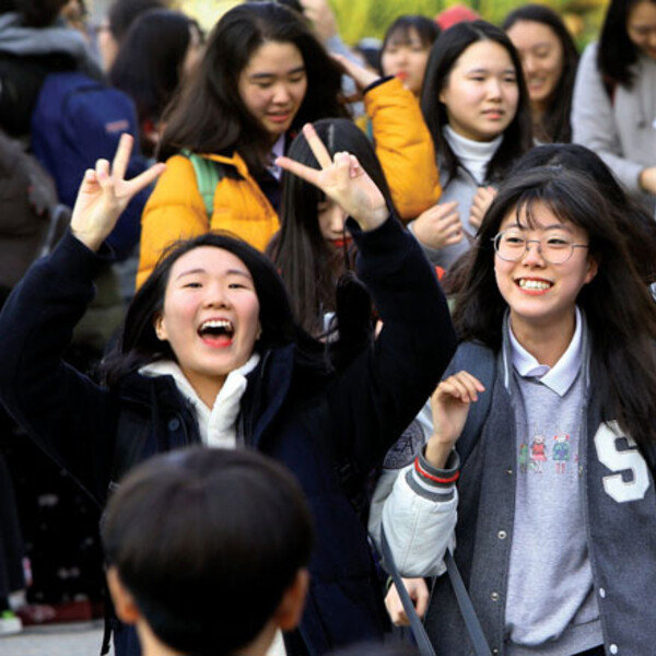 서울 종로구 율곡로 풍문여고에서 2016학년도 대학수학능력시험을 마친 수험생들이 밝은 표정으로 학교를 나서고 있다.Canon EOS-1DX, ISO 800, F6.3, T-1/200Sec, 렌즈70-200mm