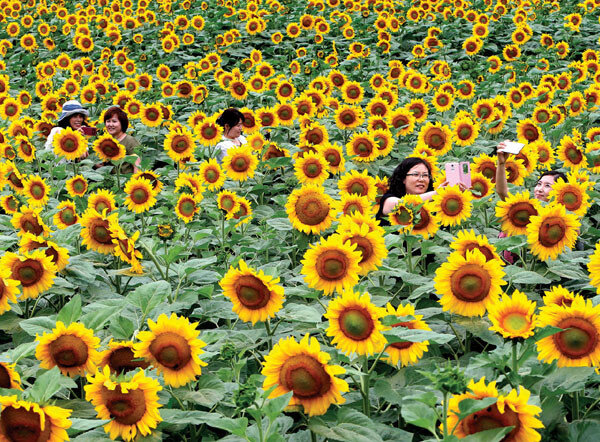 7월 23일부터 해바라기 축제가 열리는 경기 양평군 지평면 무왕1리 해바라기 마을. 16일 활짝 핀 해바라기들이 미리 구경 온 사람들을 맞이하고 있다.Canon EOS-1DX, ISO 400, F8.0, T-1/500Sec, 렌즈7…