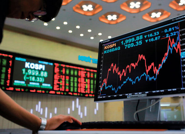 그리스의 채권단 긴축안 부결 쇼크에 7월 6일 코스피가 50p나 폭락하는 패닉적인 반응을 보인 이후 중국 상하이종합지수마저 폭락하면서 9일 한때 코스피가 1990대까지 떨어졌다. 서울 여의도 한국거래소(KRX) 홍보관에서 한 시민이…