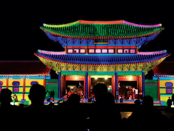 서울 종로구 경복궁에서 제1회 궁중문화축전이 열린 가운데 홍례문을 스크린으로 활용해 영상을 보여주는 미디어 파사드가 진행되고 있다. 궁중문화축전은 경복궁, 창덕궁, 창경궁, 덕수궁, 종묘 등 각 궁궐의 특성에 따라 주제를 정하고 그…