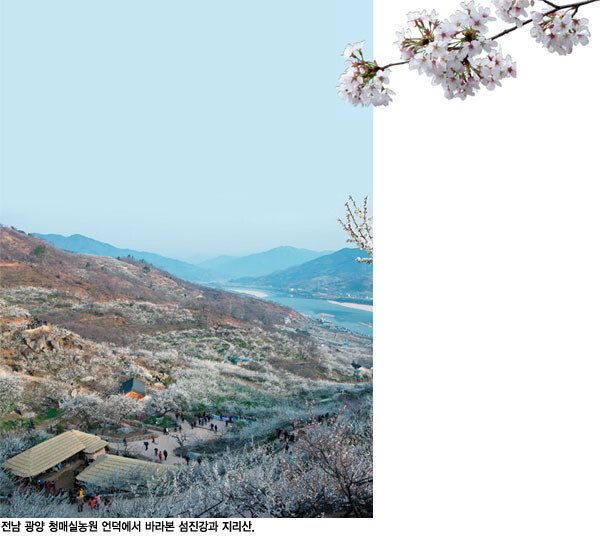 섬진강에 봄이 무르익었다. 한줄기 강바람에도 진한 매화 향기가 묻어난다. 섬진강 매화가 꽃망울을 터뜨려야 비로소 한반도에 봄이 시작된다. 3~4월 섬진강은 봄꽃들의 경연장이다. 온갖 봄꽃이 꼬리에 꼬리를 물고 피어난다. 매화가 절정…
