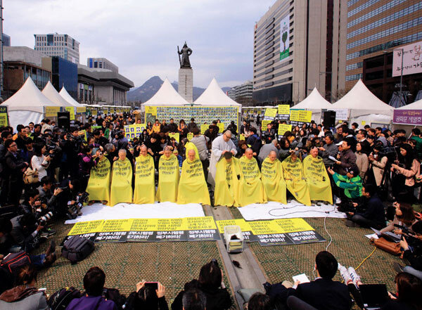 ‘4·16 세월호 참사 진상규명 및 안전사회 건설을 위한 피해자 가족협의회’(가족협의회)는 4월 2일 서울 광화문광장에서 해양수산부가 발표한 배상·보상안의 전면 중단을 요구하며 유가족 등 48명이 삭발식을 감행했다. 유경근 가족협의…