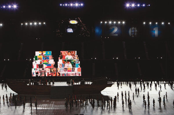 아시아올림픽평의회(OCA) 45개 회원국 모두가 참가하는 2014 인천아시아경기대회가 9월 19일부터 10월 4일까지 16일간 열린다. 대회에 앞서 9월 17일 인천아시아드 주경기장에서 펼쳐진 개회식 리허설 장면.