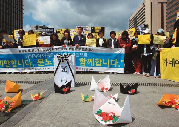 5월 8일 참교육을 위한 전국 학부모회는 세월호 침몰 사고 이후 맞은 어버이날에 카네이션을 달 수 없는 아픔을 정부에 호소하려고 서울 광화문광장에서 기자회견을 가졌다.Canon EOS-1DX, ISO 200, F22, T-1/250…