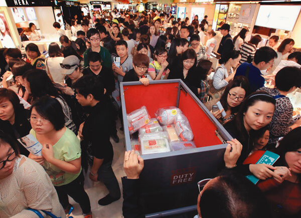 중국 국경절 연휴를 맞아 한국을 찾은 중국 관광객들이 쇼핑한 물건들을 면세점 직원들이 카트에 담아 공항으로 운반하고 있다.Canon EOS-1D Mark Ⅳ, ISO 800, F8, T-1/125Sec, 렌즈 16-35mm