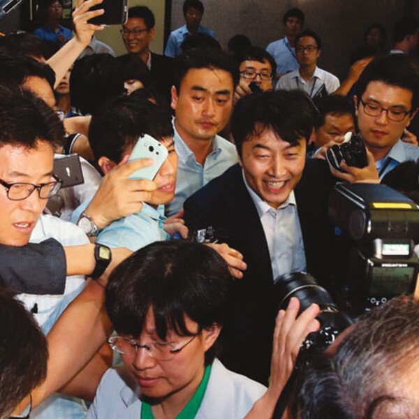 국가정보원으로부터 내란예비음모 혐의를 받고 있는 이석기 통합진보당 의원이 8월 29일 관계자와 기자들에게 둘러싸인 채 서울 여의도 국회에서 의원회관으로 가려고 이동하고 있다.Canon EOS-1DX, T 1/200, F 5.6, I…