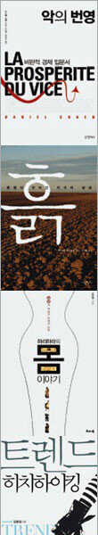 악의 번영다니엘 코엔 지음/ 이성재 외 옮김/ 글항아리/ 312쪽/ 1만6000원 경제가 인류 문명을 어떻게 바꿔놓았는지를 개괄한 책. 로마제국 흥망에서 21세기 서브프라임 위기까지 인류 문명에 한 획을 그은 경제 사건들을 쉽게 설…