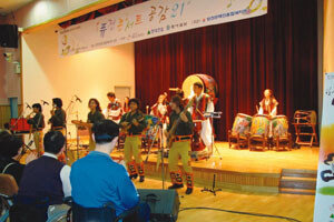 가을 햇살이 쏟아지는 10월 7일 오후 2시, 서울 양천구 신정동 양천장애인종합복지관에서는 전통타악연구소의 나눔예술 공연이 펼쳐졌다. ‘밝은 미소로 함께하겠습니다’라는 복지관의 모토에 걸맞게 사회복지사들은 친절한 미소로 장애인 관객…