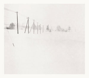 아무것도 찍히지 않은 듯한 생각에 다시 한 번 천천히 표면을 눈으로 더듬습니다. 그러다 보면 날리는 눈발 너머로 보이는 가느다란 수직선들이 전봇대라는 걸 알게 됩니다. 전봇대가 서 있는 방향으로 시선을 옮기면 나무들과 한 채의 집이…
