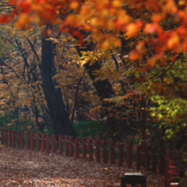 그림처럼 깔린 오색 낙엽 안개비에 촉촉이 젖은 듯