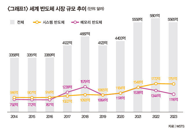 문제는 메모리 반도체 산업의 경우 기업이 경기를 예측해 반도체를 생산한 후 판매하는 방식으로 운영돼 예기치 못한 경기 불황 등에 경착륙할 수 없다는 점이다. 메모리 반도체는 2022년에도 전년도에 비해 12.6% 감소하며 반도체 위기론의 중심에 섰다. 당시 전체 반도체 시장 규모는 도리어 4.4% 증가했다. WSTS는 올해 메모리 반도체 시장이 17.0% 하락할 것으로 전망했다. 전체 반도체 시장 하락폭을 크게 뛰어넘는 수치다.