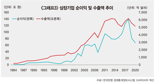 결국 수출이 매년 급등락하는 원인은 해외의 수요 변동에서 찾을 수 있다. 수출기업들은 언제 닥칠지 모르는 고객 주문에 대비해 설비를 증설하고 또 재고를 확보해야 한다. 2009년 글로벌 금융위기 같은 불황이 닥치는 순간, 지금까지 노력이 기업 실적을 악화하는 요인으로 돌변한다. 수출기업들의 각종 비용은 고스란히 나가는 한편, 수출 주문 감소로 큰 타격을 입을 공산이 크다. 2009년 한국 수출은 전년 같은 기간에 비해 15.9% 줄어들었고, 상장기업 순이익은 41.6% 감소한 바 있다.물론 불황에도 수요가 늘어나는 산업이 없는 것은 아니나, 반도체와 자동차, 조선 등은 모두 소득 변화에 따라 수요가 급변하는 이른바 ‘경기민감재’ 특성을 지니고 있다. 앞으로 바이오와 로봇, 화장품 등 상대적으로 경기를 덜 타는 제품이 주력 품목으로 부각되기를 바라지만, 이와 같은 희망이 실현되는 데는 상당한 시간이 걸릴 것 같다. 따라서 한국 주식시장은 앞으로도 상당 기간 급등락을 반복할 운명이라고 생각된다. 이상과 같은 여건 때문에 주식투자자 중 많은 이가 실패를 경험할 수밖에 없다.