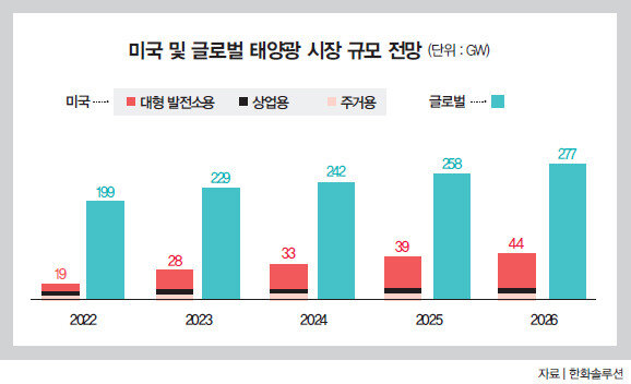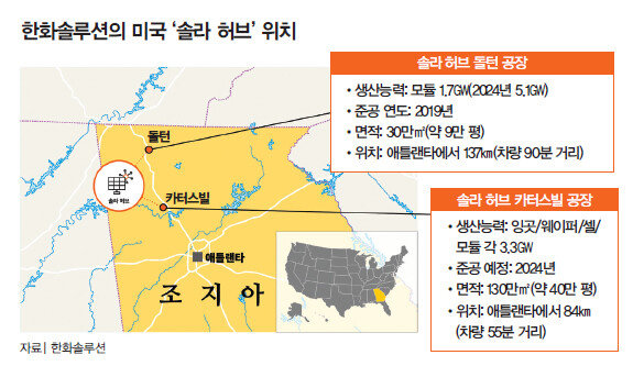 한화솔루션은 내년 솔라 허브 가동이 본격화하면 북미 지역에서 기초 소재인 폴리실리콘부터 완제품인 모듈까지 5단계 밸류체인 생산 라인을 모두 갖춘 유일한 기업이 된다. 원재료부터 완제품까지 미국 현지에서 생산한 ‘메이드 인 아메리카’ 태양광 제품 판매를 통해 현지 시장 1위 자리를 더욱 굳힐 수 있을 것으로 기대된다. 솔라 허브로 생산 라인이 모아져 물류비 절감과 운영 효율성 제고를 통해 원가 경쟁력도 강화할 수 있다.한화솔루션은 2010년 한화그룹이 중국 ‘솔라펀파워홀딩스’를 인수한 뒤 한화솔라원으로 태양광 시장에 본격 진출했다. 2012년에는 독보적인 태양광 기술을 보유한 독일 ‘큐셀’을 인수해 한화큐셀로 사명을 바꾸고 사업 확장에 속도를 냈다. 이후 2015년 태양광 사업의 양대 축이던 한화큐셀과 한화솔라원을 ‘한화큐셀’로 통합했다. 이후 합병을 거쳐 한화큐셀앤드첨단소재가 된 이후 2020년 한화케미칼을 합병해 태양광·화학·첨단소재를 아우르는 한화솔루션이 출범했다. 토털 에너지 솔루션 기업이자 한화그룹 주력 사업으로 성장한 한화솔루션의 태양광 사업은 현재 한화큐셀 부문이 담당한다. 한화큐셀 부문은 에너지저장장치(ESS)가 결합된 태양광 솔루션 사업, 태양광발전소 개발 시업, 풍력 사업 등을 추진하고 있다.