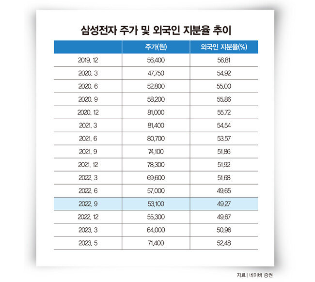 메모리 반도체는 대표적인 AI 수혜 품목으로 분류된다. 빅데이터를 얼마나 신속하게 활용하느냐가 중요해진 만큼 정보 저장 및 전송에 사용되는 D램의 중요성 또한 더 커질 것으로 전망되기 때문이다. 삼성전자는 글로벌 메모리 반도체 1위 기업으로 1분기 D램 시장점유율이 43.2%에 달했다. 미국 마이크론테크놀로지(28.2%)와 SK하이닉스(23.9%)가 D램 시장에서 삼성전자를 추격하고 있다. 김양팽 산업연구원 전문연구위원은 “과거 반도체 시장을 개인용 컴퓨터(PC)와 스마트폰이 주도했다면 향후에는 AI가 주도하는 형태로 시장이 흘러갈 것으로 전망된다”고 말했다.외국인 투자자들은 일찌감치 삼성전자 매수에 나선 상태다. 연초부터 삼성전자를 집중매수하고 있는데, 한국거래소에 따르면 외국인 투자자들은 올해 들어 5월 30일까지 10조2618억 원 상당의 삼성전자 주식을 순매수했다. 같은 기간 외국인 투자자들이 코스피 시장에서 13조 원가량 순매수한 점을 고려할 때 사실상 삼성전자를 콕 찍어 투자한 것이다.