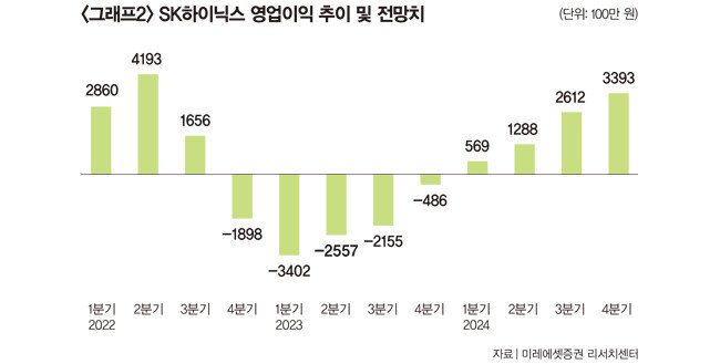 SK하이닉스는 HBM 부문에서도 이익 증가가 기대된다. 시장조사 전문업체 트렌드포스에 따르면 지난해 HBM의 전 세계 시장점유율은 SK하이닉스 50%, 삼성전자 40%로 집계됐다. 시장점유율만 보면 두 기업이 대동소이하지만, HBM 시장에서도 SK하이닉스가 삼성전자보다 한발 앞선 기술력으로 시장을 주도하는 것으로 나타났다. SK하이닉스는 지난해 6월부터 4세대 HBM 제품인 ‘HBM3’를 양산해 현재 엔비디아의 그래픽처리장치(GPU)에 탑재되고 있는 반면, 삼성전자는 하반기가 돼서야 4세대 HBM 양산에 본격 돌입할 것으로 보인다. 최근에는 SK하이닉스가 엔비디아로부터 5세대 HBM인 ‘HBM3E’ 샘플 입고 요청을 받고 물량 준비에 나선 것으로 알려졌다. SK하이닉스는 HBM3E의 내년 상반기 양산을 목표로 제품을 개발하고 있다.고 연구원은 “SK하이닉스는 메모리 반도체 기업 중 유일하게 4세대 HBM인 HBM3 제품을 대량 양산하고 있으며 엔비디아에 독점 공급 중”이라며 “업황 반등 구간에서 가파른 이익 증가가 기대된다”고 전망했다. 도현우 NH투자증권 연구원은 “HBM 부문에서 SK하이닉스의 시장점유율과 기술력이 경쟁사보다 우수하다”고 밝혔으며, 김동원 KB증권 연구원은 “AI 서버용 메모리는 아직 HBM2가 주력이지만 내년부터 HBM3가 전체 시장의 20%까지 증가해 SK하이닉스가 수혜를 입을 전망”이라고 분석했다. 업계에서는 SK하이닉스 2분기 실적에 DDR5 매출 확대가 반영되면 영업손실 폭이 크게 줄어들 것으로 예측한다. KB증권은 올해 SK하이닉스 영업적자를 11조1000억 원에서 9조7000억 원으로 조정했고, 2024년 영업이익은 1조6000억 원에서 6조1000억 원으로 상향 조정했다.