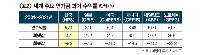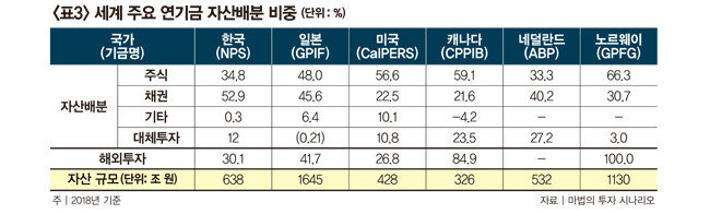 전반적인 방향성은 해외투자와 대체투자를 강화하는 것이라고 볼 수 있다. 이는 해외 선진 연기금의 자산배분과 비교해도 자연스러운 현상이다. 국내 자산에 과도하게 쏠려 있던 자산배분 비중이 차츰 균형을 찾아가는 것으로 보인다. 국민연금이 주식 비중을 10년 전 29.3%에서 현재 46.2%, 그리고 2027년에는 55%까지 확대하는 이유는 무엇보다 수익률 개선이 목적이기 때문이다.