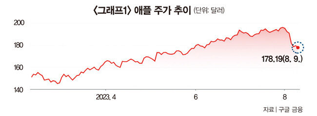 하지만 2분기 실적 부진으로 주가가 고전하는 종목도 있다. 대표 기업이 애플인데.“재벌 걱정, 연예인 걱정 다음으로 쓸 데 없는 게 애플 걱정이라는 말이 있다(웃음). 애플은 실적에서 서비스 매출의 비중을 주목할 필요가 있다(그래프1 참조). 아이폰 판매량은 부진했을지 몰라도 애플뮤직, 클라우드 같은 서비스에서 나오는 매출이 전체 매출의 4분의 1까지 올라왔다. 이 말인즉슨 이제 기계보다 서비스 판매가 주요 먹거리가 되는 대전환이 이뤄지고 있다는 뜻이다. 내년쯤이면 이 비중이 3분의 1까지 커질 것이라고 본다. 따라서 단순히 기계 판매량에 매몰될 필요가 없다. 이제 애플은 기초 소비재 종목 같은 느낌으로 나아갈 것이다.”