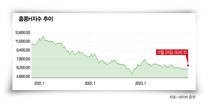11월 15일 홍콩항셍중국기업지수(HSCEI·홍콩H지수) 온라인 종목토론실에서 나온 반응들이다. 홍콩H지수를 기초자산으로 하는 주가연계증권(ELS) 상품에 가입한 투자자들이 만기를 앞두고 손실을 걱정하고 있는 것이다. 상품 대부분이 내년 상반기 만기인 가운데 최근 중국 경기침체로 홍콩H지수가 2021년 판매 당시(1만2000대)의 반토막 수준을 기록하고 있는 탓이다(그래프 참조). 투자자들은 당초 손실 위험이 높은 ELS에 투자하기를 권유한 은행에 대해서도 “안전 상품으로 오인하게 했다” “일종의 불완전판매 아니냐”며 성토 목소리를 높이고 있다. 이에 대규모 손실이 현실화할 경우 은행권도 신뢰에 상당한 타격을 입을 것으로 전망된다.