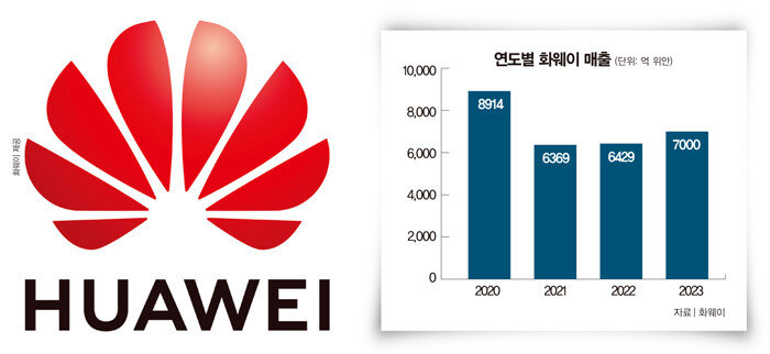 그런 화웨이가 기적처럼 2023년 매출 7000억 위안(약 127조6000억 원)을 기록하면서 3년 전 매출(2020)의 78.5%까지 회복했다. 후허우쿤 화웨이 순환회장은 자사 직원들에게 보낸 신년사에서 “우리는 수년간 노력 끝에 폭풍우를 이겨냈고 정상 궤도에 거의 다 올랐다”며 부활을 선언했다. 후 회장은 “통신 인프라 사업이 견고하게 유지되고 있으며, 스마트폰 분야에서 예상을 뛰어넘는 실적이 나왔다”고 밝혔다.![화웨이가 지난해 출시한 스마트폰 ‘메이트 60 프로’. [화웨이 제공]](https://dimg.donga.com/a/700/0/90/5/ugc/CDB/WEEKLY/Article/65/a0/8f/49/65a08f4913c8d2738276.jpg)