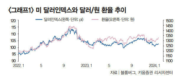 그렇다면 향후 달러/원 환율은 어떻게 움직일까. 단기적 불안 요인은 남아 있지만 미국달러에 연동돼 점진적 하향 흐름을 보일 것으로 전망된다. 연준의 금리인하가 6월쯤 물가 둔화세와 경기 연착륙을 위한 대응 차원에서 이뤄질 것으로 전망됨에 따라 달러 역시 완만한 약세를 보일 것으로 예상되기 때문이다.