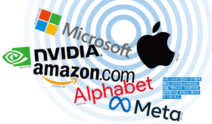 미국 나스닥 상장사 시가총액 톱10에는 마이크로소프트(MS), 애플, 엔비디아, 아마존닷컴, 알파벳(구글 모회사), 메타, 테슬라, 브로드컴, ASML 홀딩, 코스트코 홀세일이 이름을 올리고 있다(2월 말 기준). 이 중에서도 상위 6개 기업이 정보기술(IT)업계 빅테크로, 영어 앞 글자를 따 마나마(MANAMA: MS·애플·엔비디아·아마존닷컴·메타·알바펫)로 불린다. 기존 글로벌 빅테크 대장주를 지칭하던 신조어 마마(MAMAA: 메타·애플·마이크로소프트·아마존닷컴·알파벳)에 엔비디아가 추가된 것이다. 이들 6개 기업 시가총액을 합치면 약 12조 달러(약 1경6000조 원)에 달한다.