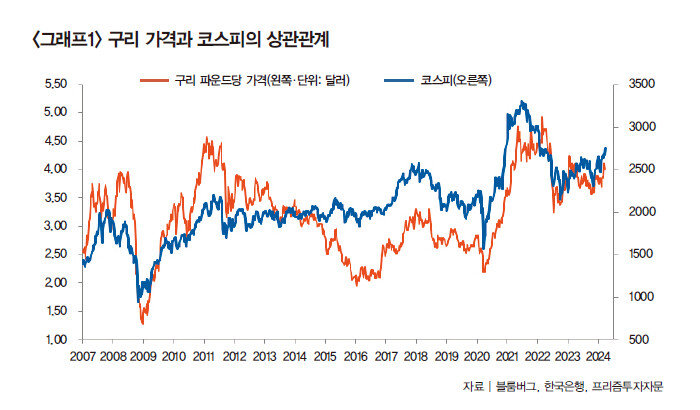 구리, 한국 수출제품 가격 선행지표