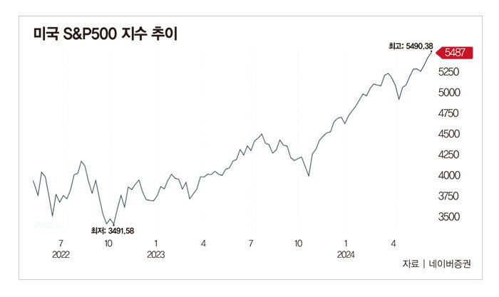 5월 이후 ‘공포지수’로 불리는 시카고옵션거래소 변동성지수(VIX)는 11~13 사이에서 움직이고 있다. 일반적으로 VIX가 높을수록 시장 불확실성이 커지고 VIX가 낮을수록 시장 안정성이 높아지는데, 현재 VIX는 5년 만에 최저치다. 이는 미국 인플레이션이 5월부터 둔화된 모습을 보이기 시작했고, 연방준비제도이사회(연준)가 연말에는 금리를 내릴 것으로 전망되면서 투자심리가 안정됐기 때문이다.