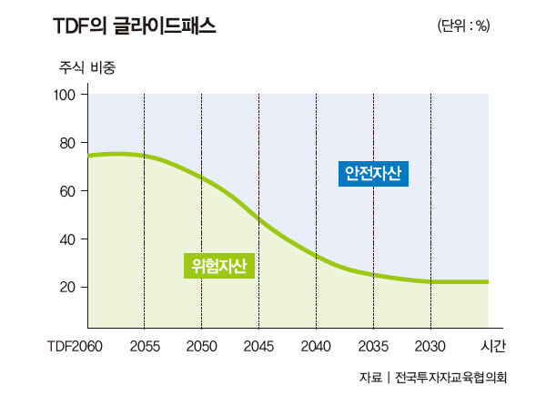 TDF, 은퇴 시점 맞춰 위험자산과 안전자산 비중 조정