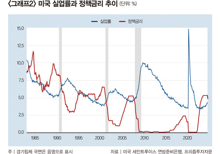 물가하락·실업률 상승기 단행되는 美 금리인하