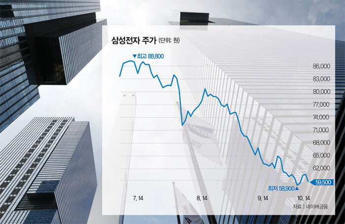 3분기 어닝쇼크에 ‘10만전자’를 기대했던 삼성전자 주가가 ‘5만전자’로 주저앉았다(그래프 참조). 투자자들은 어떤 전략으로 삼성전자 투자에 나서야 할까.