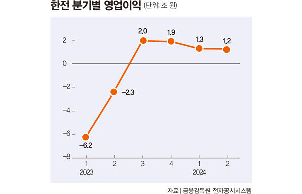 한전의 3분기 실적 발표는 11월 13일로 예정돼 있다. 지난해 3분기 흑자로 돌아선 실적이 5분기 연속 흑자를 기록할지, 그 폭이 어느 정도일지가 관건이다. 증권가에서는 여름철 폭염에 따른 전기 판매량 상승, 지난해 8월 이래 이어진 국제 에너지 가격 안정화 추세로 실적 개선이 이뤄졌을 것으로 분석한다. 영업이익 전망치는 3조 원대 초반이다. 현실화할 경우 2021년 2분기 이후 최대 수준이다. 한전은 지난해 3분기 약 2조 원, 4분기 1조9000억 원, 올해 1~2분기 각각 1조3000억, 1조2000억 원 영업이익을 냈다(그래프 참조). 또한 3분기 실적은 2년간 중단됐던 한전 배당이 재개될 수 있을지 판가름할 척도가 될 전망이다. 문경원 메리츠증권 연구원은 “한전의 이익 개선이 주가에 반영되려면 배당이라는 연결고리가 필요하다”며 “배당이 있다면 빠른 재평가가 이뤄질 것이고, 그렇지 않다면 주당순자산가치(BPS) 상승에 따른 점진적 우상향이 예상된다”고 말했다.