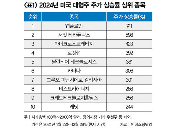 ![2024년 미국 뉴욕증시에서는 앱플로빈, 팔란티어, 엔비디아 등 인공지능(AI) 관련주가 좋은 성적을 보였다. [각 사 제공]](https://dimg.donga.com/a/700/0/90/5/ugc/CDB/WEEKLY/Article/67/73/34/2a/6773342a03bbd2738276.jpg)
