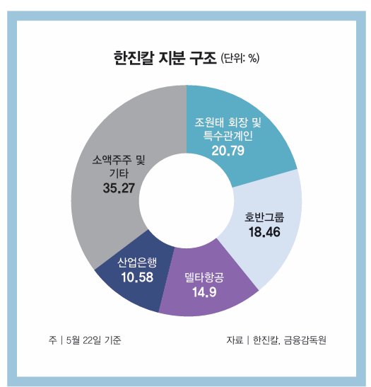 다만 호반 입장에서는 한진칼 인수에 실패하더라도 손해 볼 게 없다는 분석이 나온다. 호반이 2022년부터 사들인 한진칼 지분의 평균 매입 단가는 5만 원대 후반으로 추정된다. 경영권 분쟁 가능성이 불거지면서 한진칼 주가는 10만 원대로 올랐다(5월 21일 종가 11만1300원). 추후 호반이 보유한 한진칼 지분을 처분만 해도 100% 가까운 수익률을 기록할 수 있는 셈이다.