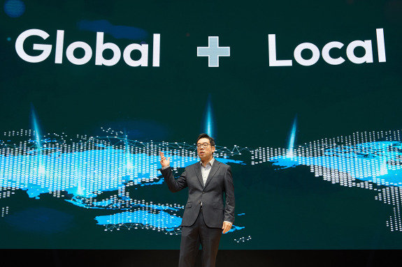 제임스 장 지마켓 대표가 10월 21일 서울 강남구 코엑스에서 열린 지마켓 미디어데이에서 ‘글로벌-로컬 마켓’에 대한 비전을 발표하고 있다. 지마켓 제공