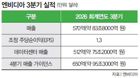 호실적을 이끈 것은 역시나 주요 사업 부문인 데이터센터였다. 고효율 아키텍처인 블랙웰에 대한 높은 수요, 빅테크의 AI 인프라 투자 열기 등으로 매출이 지난해 같은 기간보다 66% 오른 512억 달러(약 75조2000억 원)로 집계됐다. 4분기 가이던스도 투자자들을 안도하게 했다. 엔비디아는 4분기 매출이 650억 달러(±2%. 약 95조3000억 원)에 이를 것이라는 강력한 가이던스를 제시했다. 대(對)중국 매출이 ‘0’이라고 가정했음에도 월가 예상치(616억6000만 달러·약 90조5000억 원)를 뛰어넘었다.