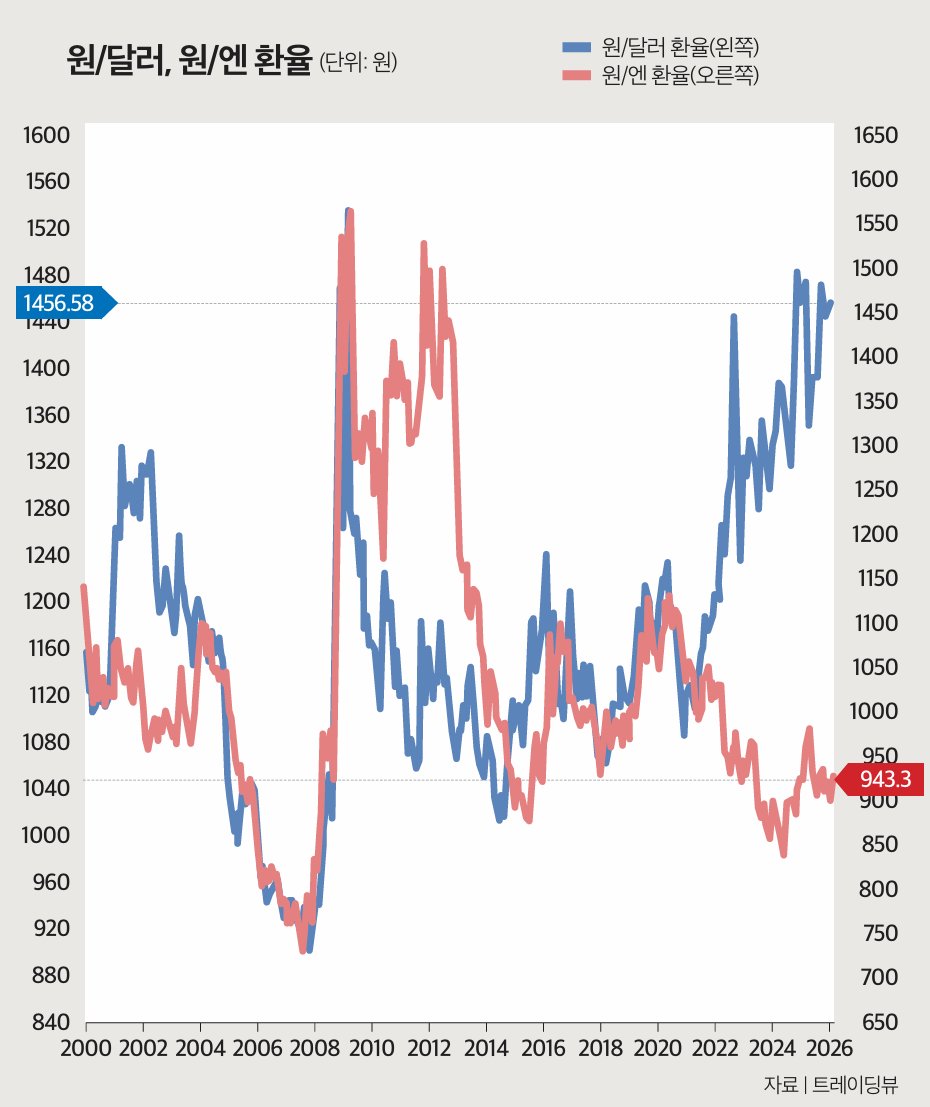 달러 대신 엔화 투자를 고려할 수도 있다. 엔화는 오랜 기간 약세였지만, 자세히 들여다보면 등락이 있었다. 원/엔 환율은 2022년 3월 1020원 아래로 내려간 뒤 1년 넘게 20~30원 등락하는 박스권에서 움직였다. 이후 2025년 4월 다시 1000원대로 상승했고, 현재는 940원대다. 지금은 일부 물량이 물려 있을 수 있지만, 이때가 환율 투자의 장점이 드러나는 구간이다. 보유한 엔화로 도쿄 증시에 상장된 일본 주식을 사면 된다. 일본 증시는 2022년 이후 역사적 강세장을 이어왔다. 현금 보유 장점을 살려 도쿄 증시에 투자했다면 더 높은 투자 수익률을 거뒀을 수 있다.”